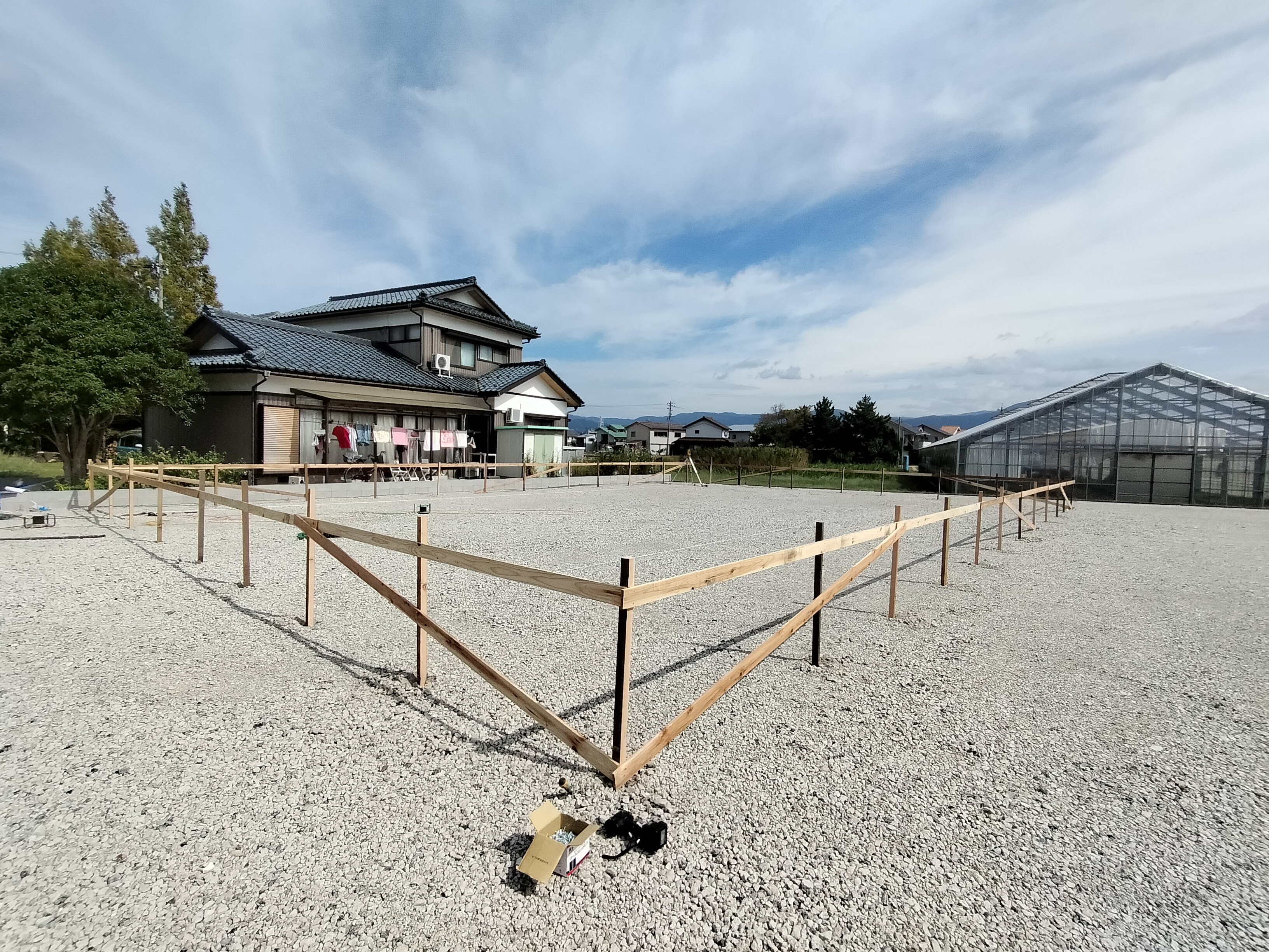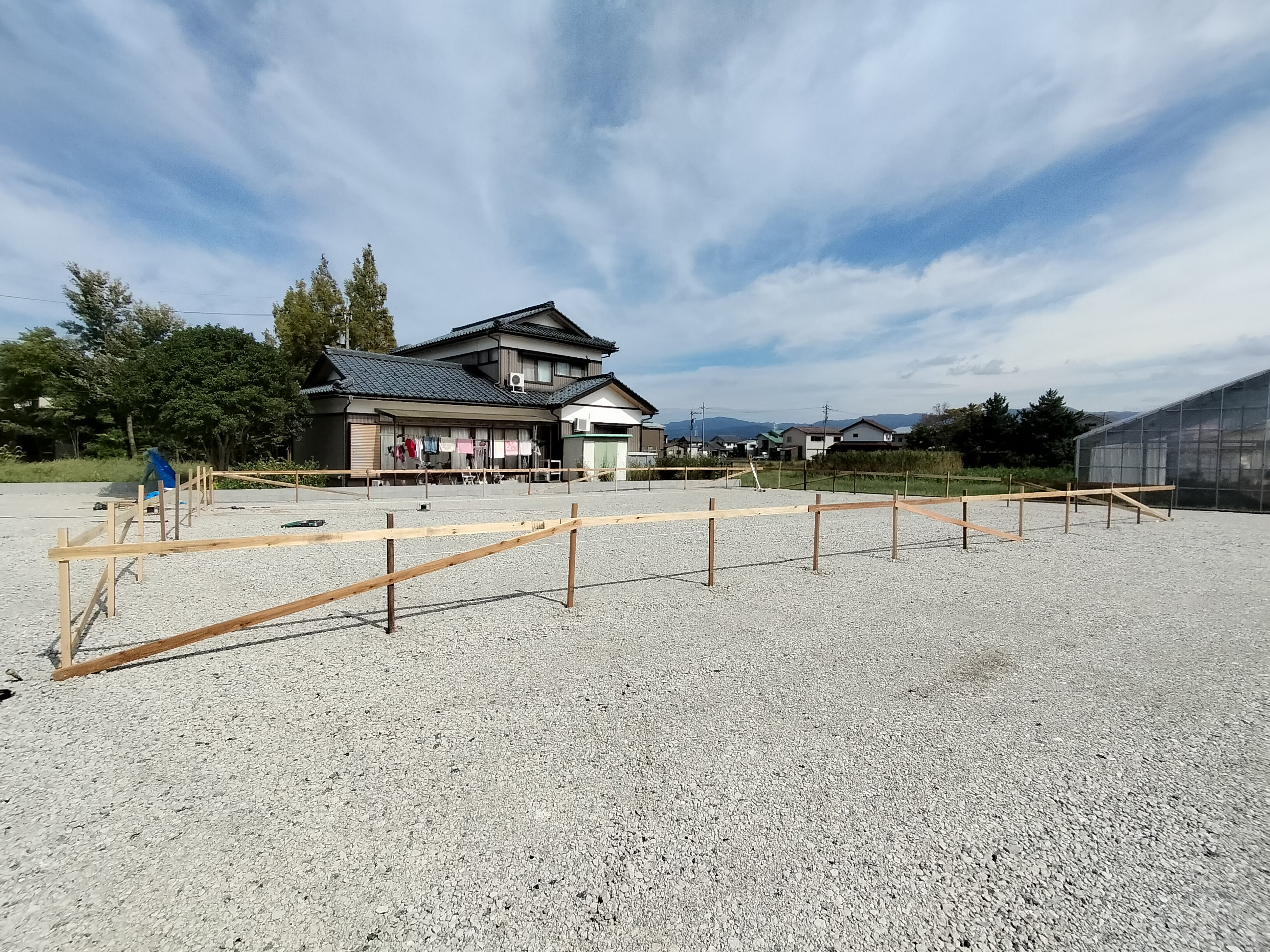 本日は敦賀H様邸の遣り方(やりかた)をおこないました。