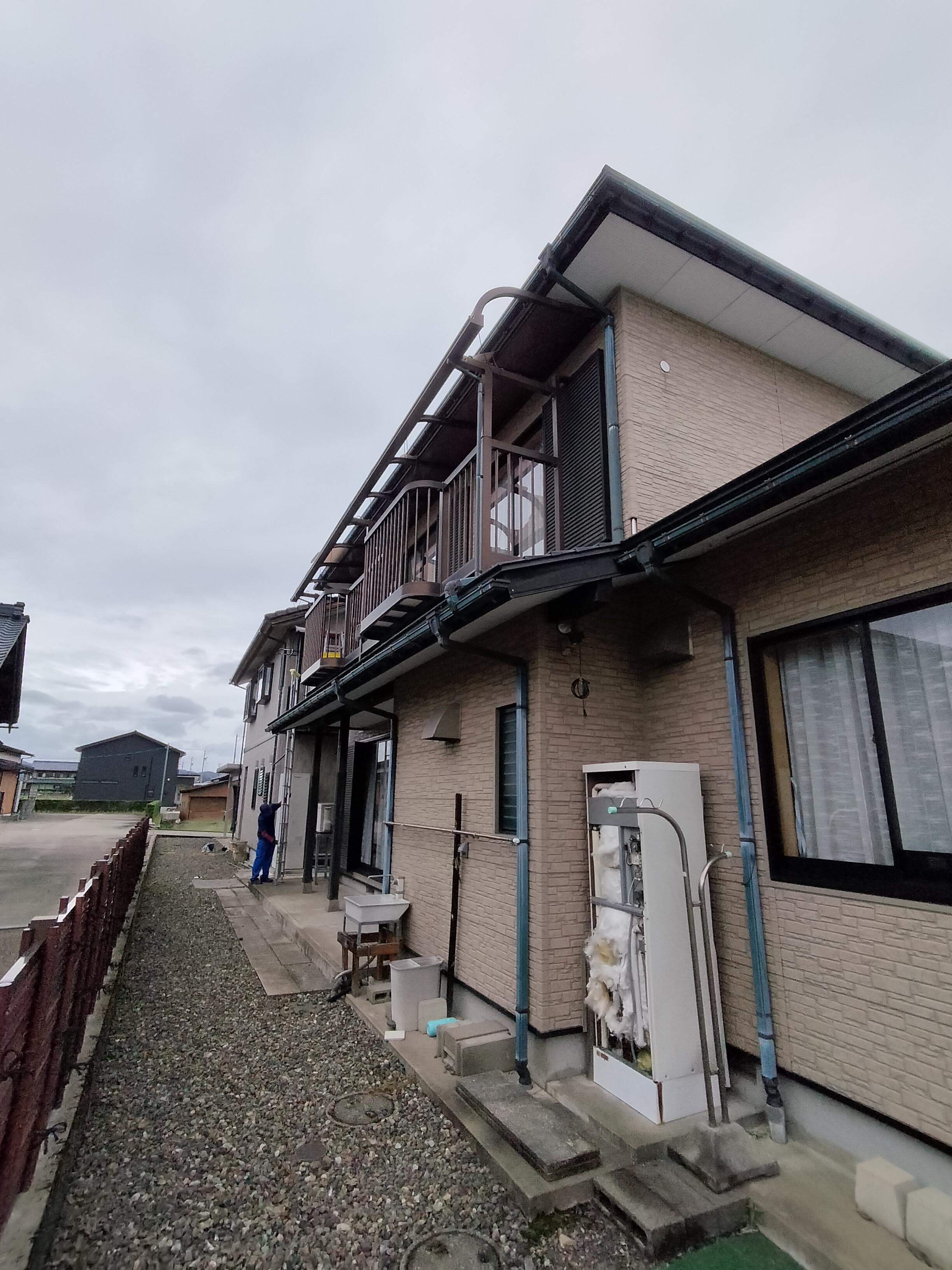 今日は越前市M様邸の改装工事に先立って、屋根が破損していたアルミバルコニーの解体を行いました。