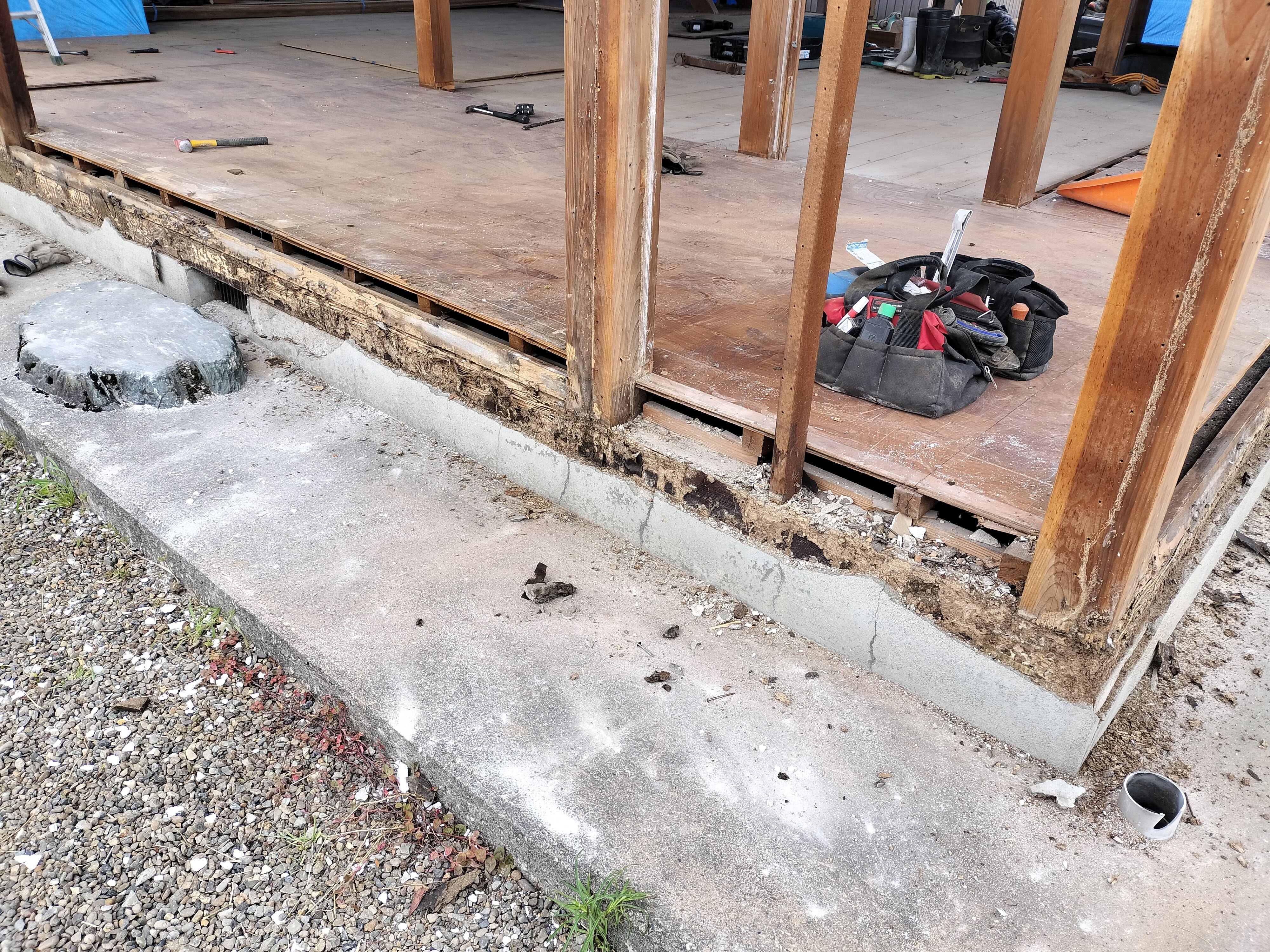 これだけシロアリにやられていると被害のあった土台と柱の一部は取替えになりそうです。何もないのが一番ですが、モルタルを剥がさないと分からない箇所なので見逃さずに発見できてよかったと前向きにとらえたいと思います。