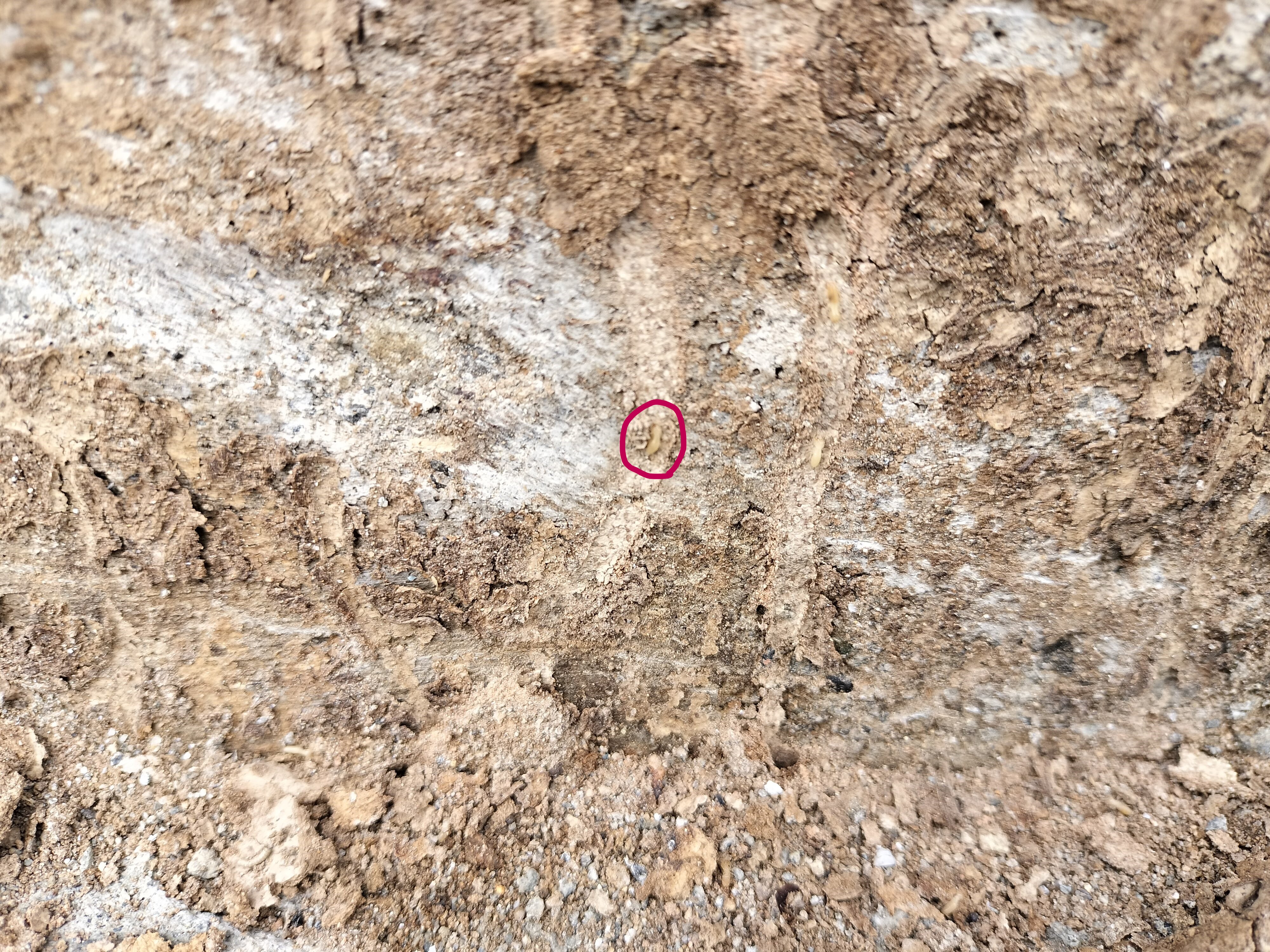 直射日光を嫌うシロアリの作る蟻道も複数あり、壊してみると中から生きた白蟻も多数見つかりました。こういった箇所も念入りに薬剤処理します。