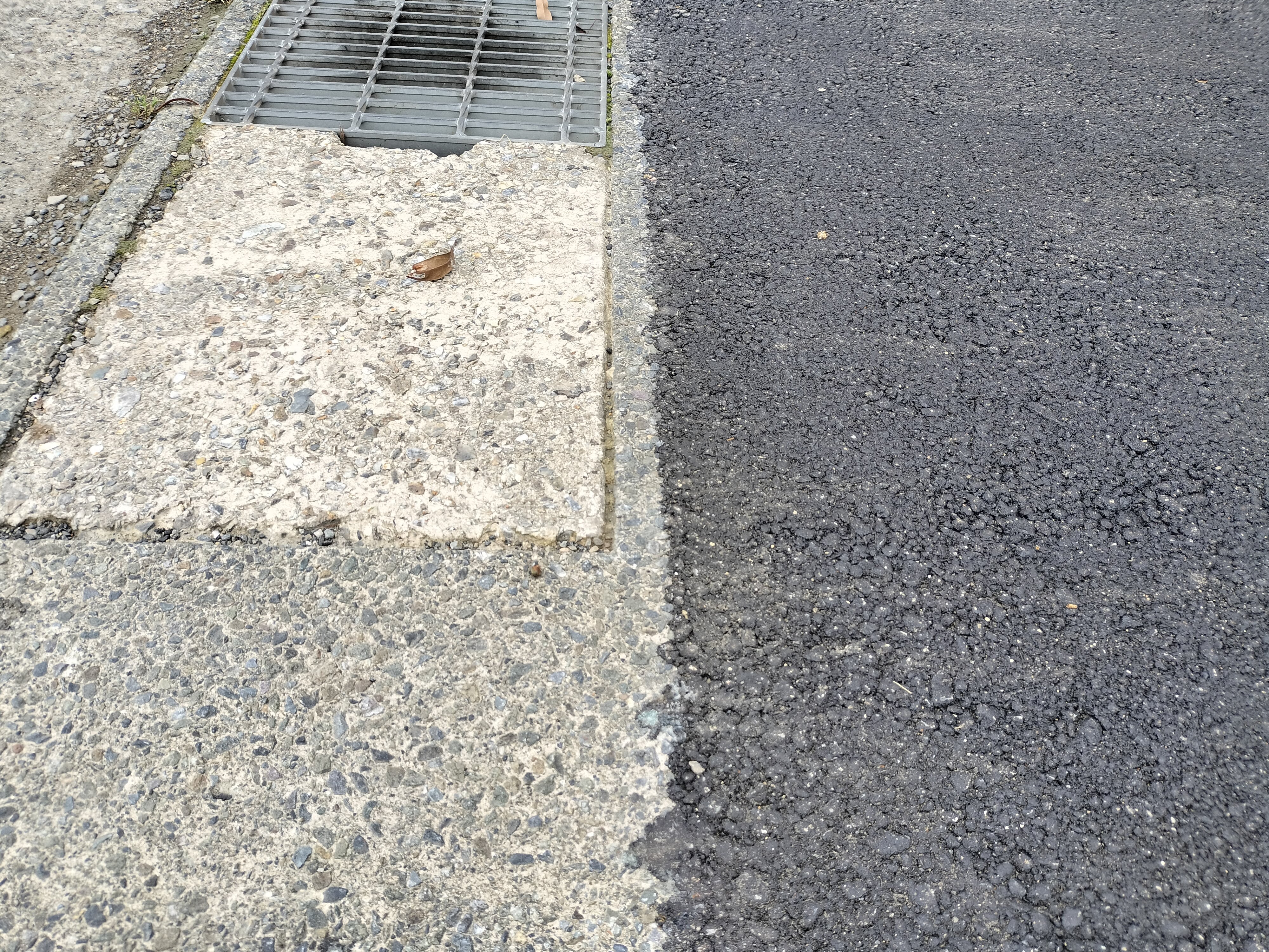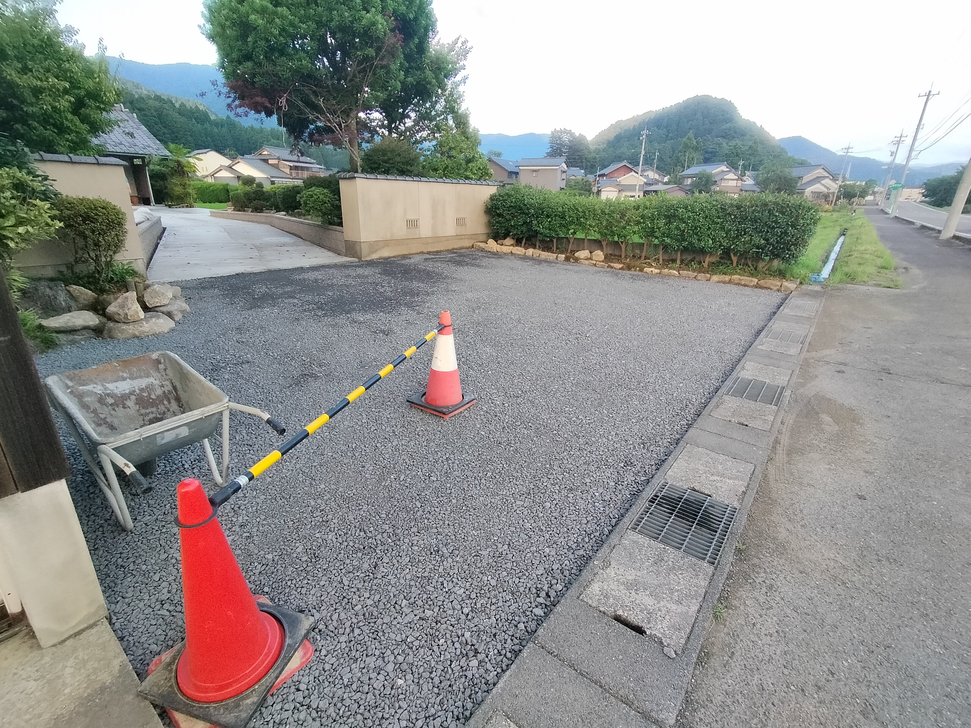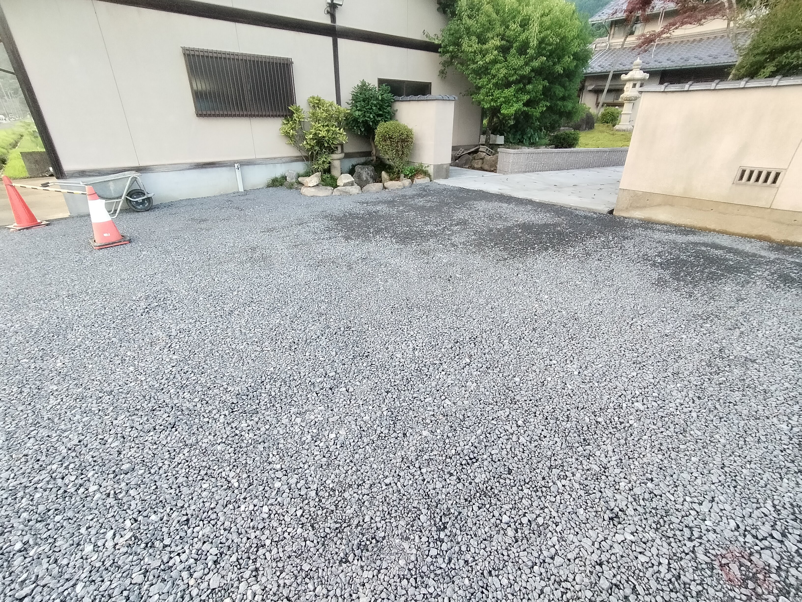 前日までに路盤の調整を終えて、朝から舗装工事を行い、午前中には完成しました。