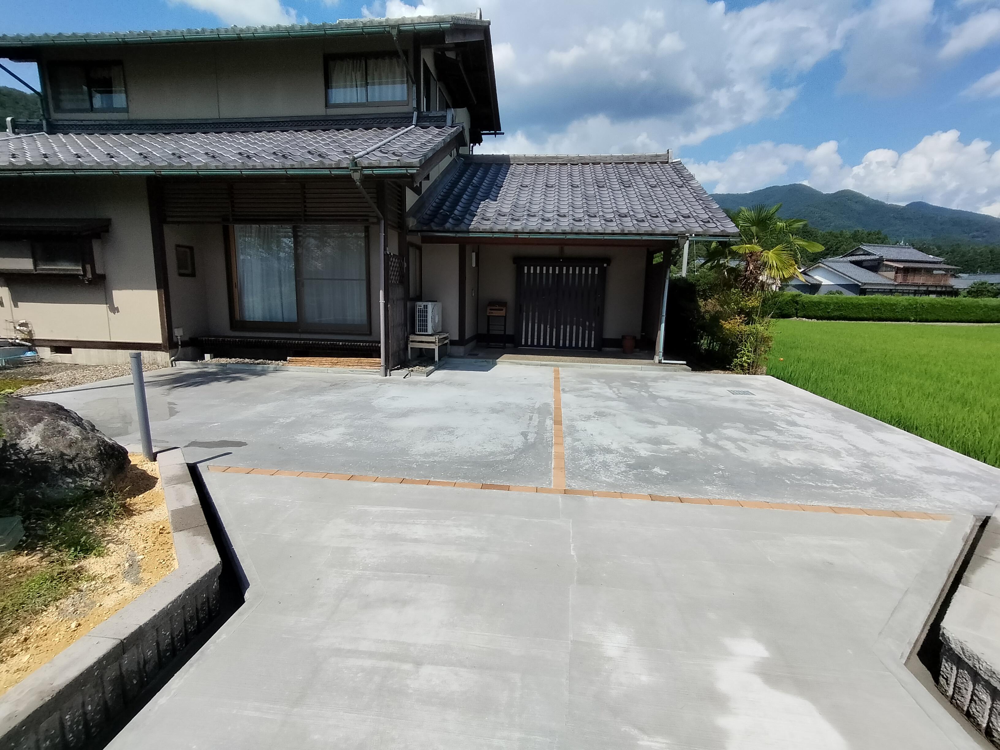 車庫から玄関まで約20mほどの距離を高齢時や介護などのことも考慮して車で直接アプローチできるように改修しました。