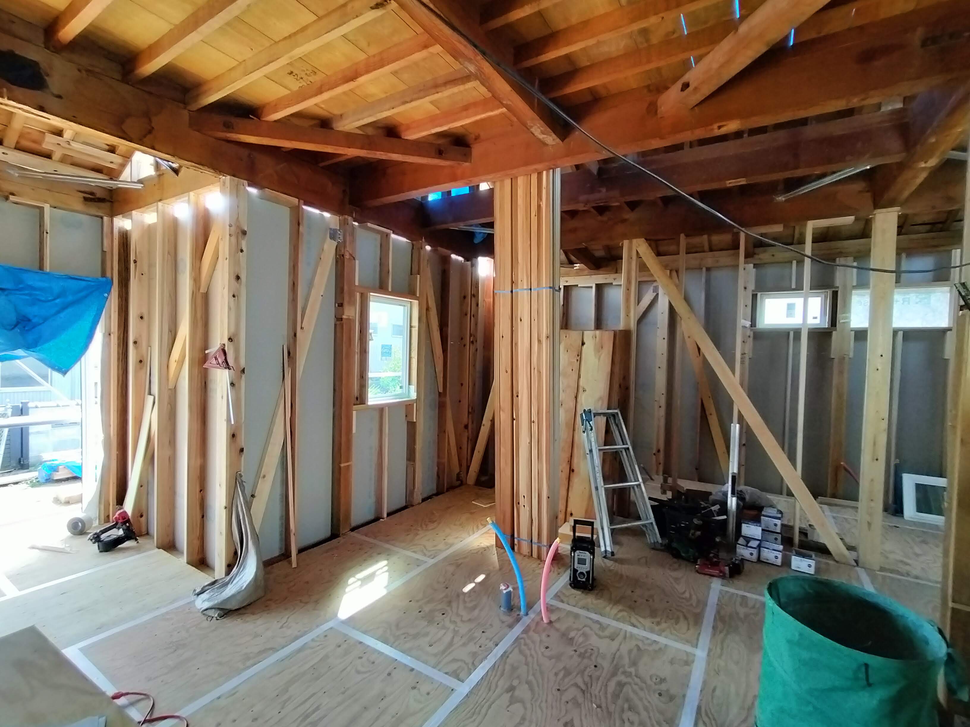 H様邸リノベーション工事は1階の外壁下地が仕上がってきました。