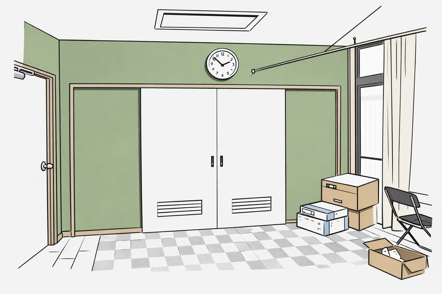 壁はクロスの貼替えを行い、一部では扉をふさいで壁に変更します。