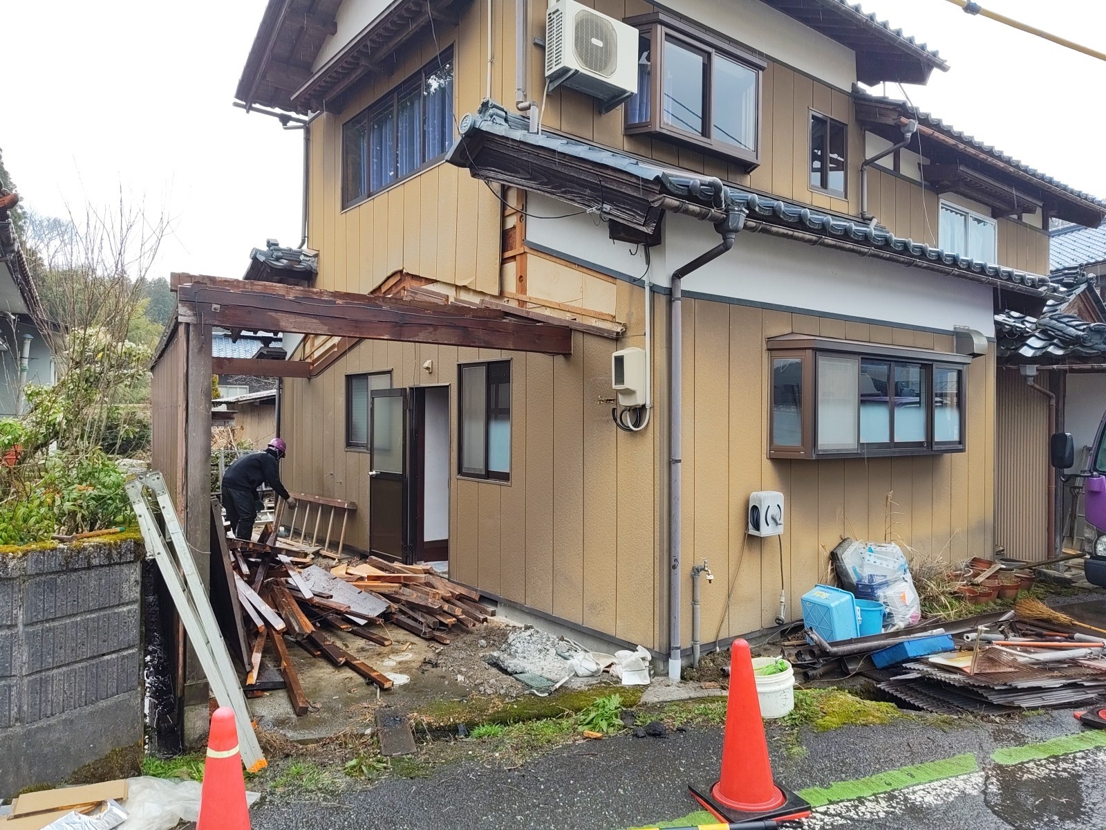 今日は、南越前町M様邸の新築工事に向けた既存住宅の解体工事初日でした。